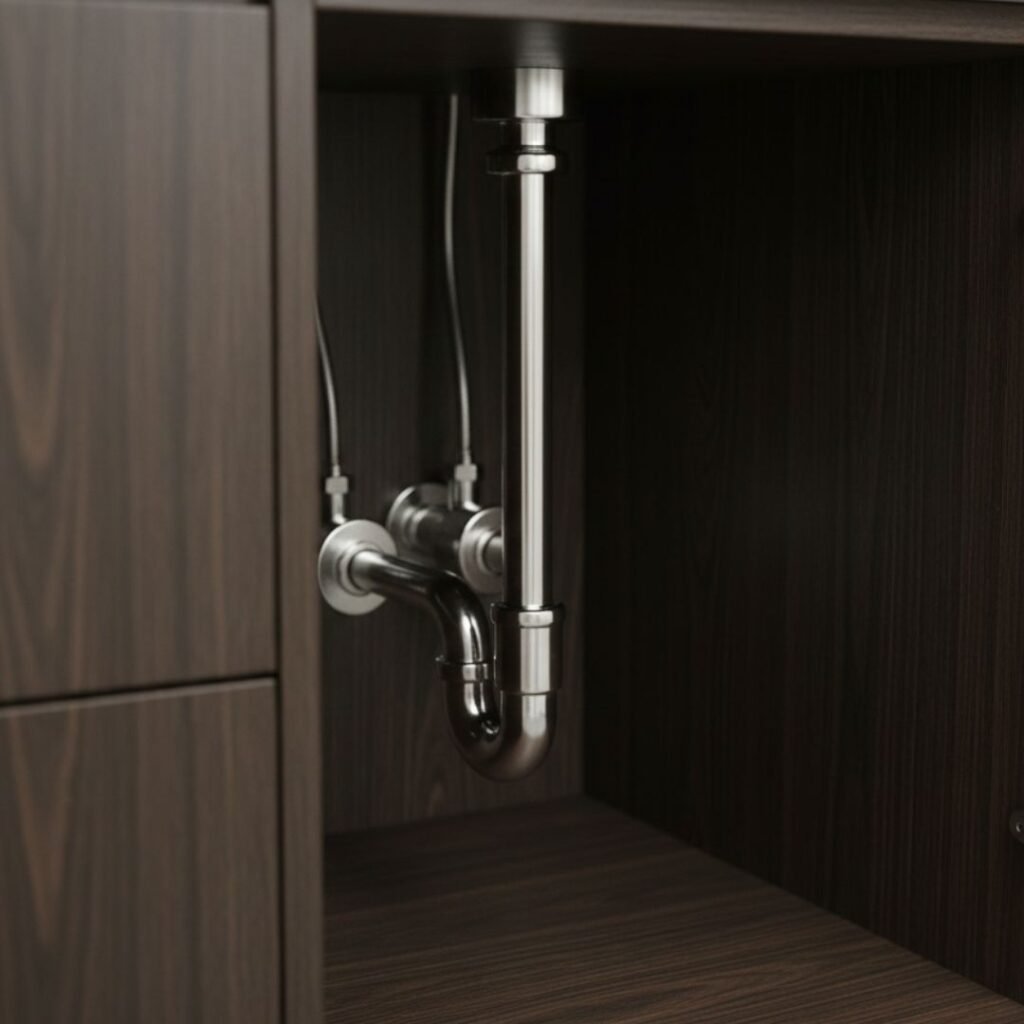 Componentes de latón de alta resistencia para el control seguro y estético del flujo de agua en lavabos y fregaderos.
